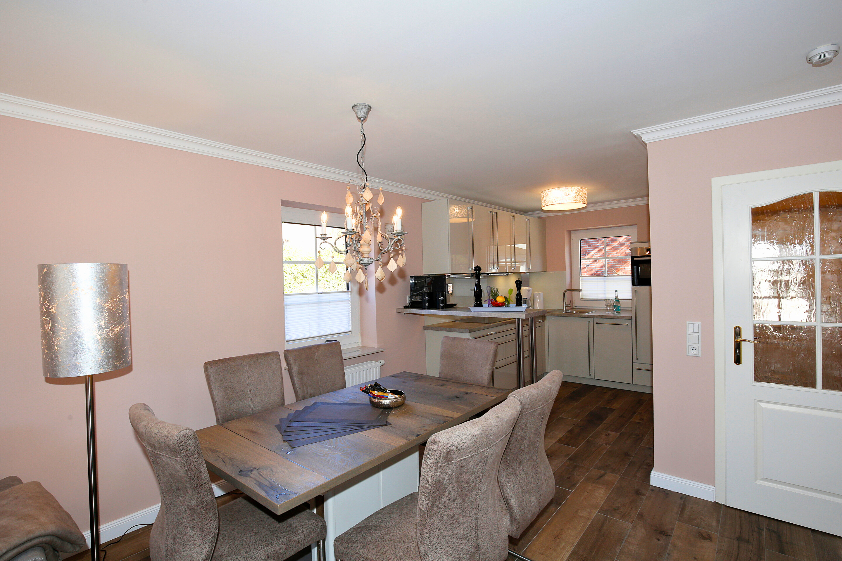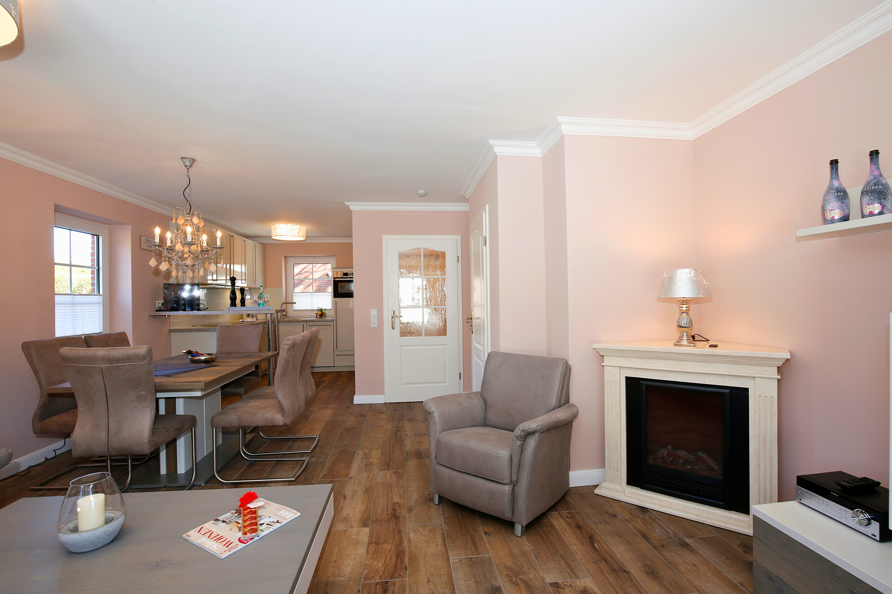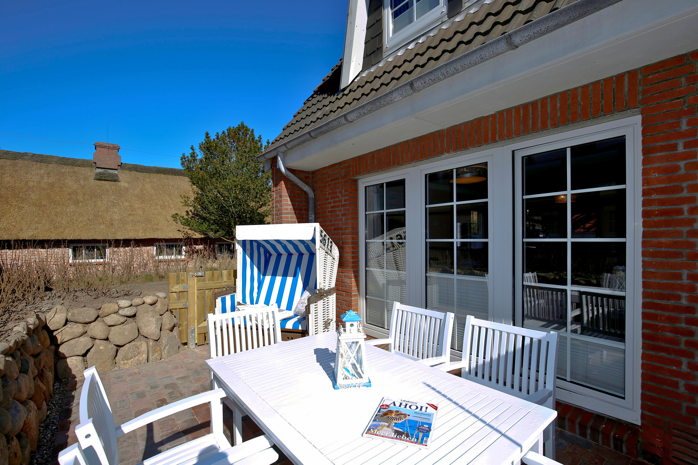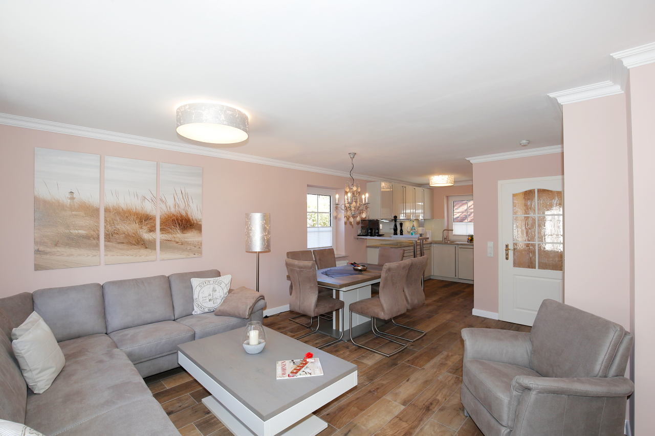 Erleben Sie luxuriösen Wohnkomfort in dieser exklusiv ausgestatteten Haushälfte mit ca. 90 qm Wohnfläche. Genießen Sie entspannte Stunden auf der Westterrasse, die mit einem Strandkorb und eleganten Gartenmöbeln zum Verweilen einlädt. Das Haus bietet Platz für bis zu 6 Personen und überzeugt mit einem gemütlichen Kamin für behagliche Abende.