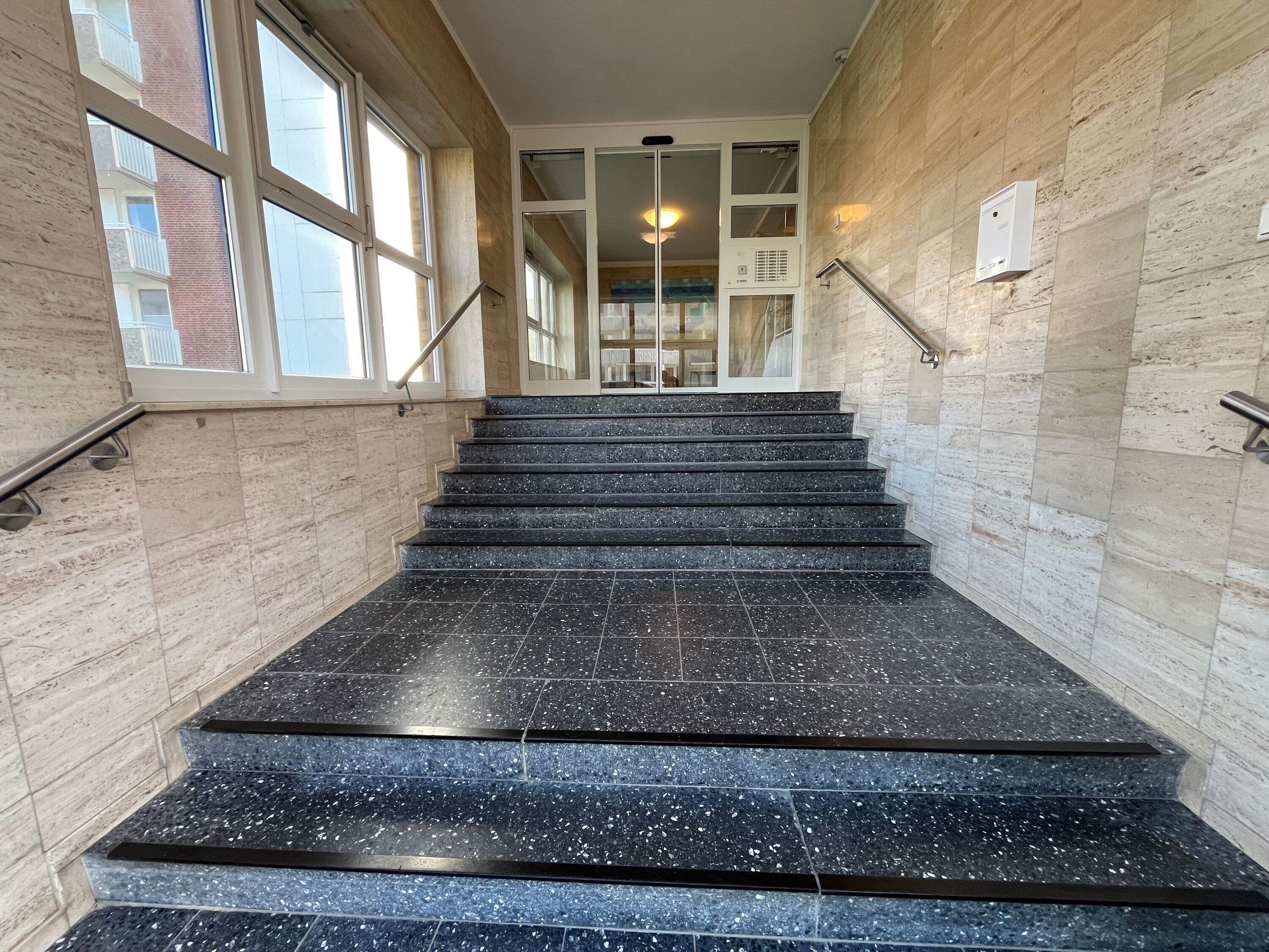 Im Haus befindet sich ein Fahrstuhl, der über 1/2 Etage zu Fuß erreichbar ist