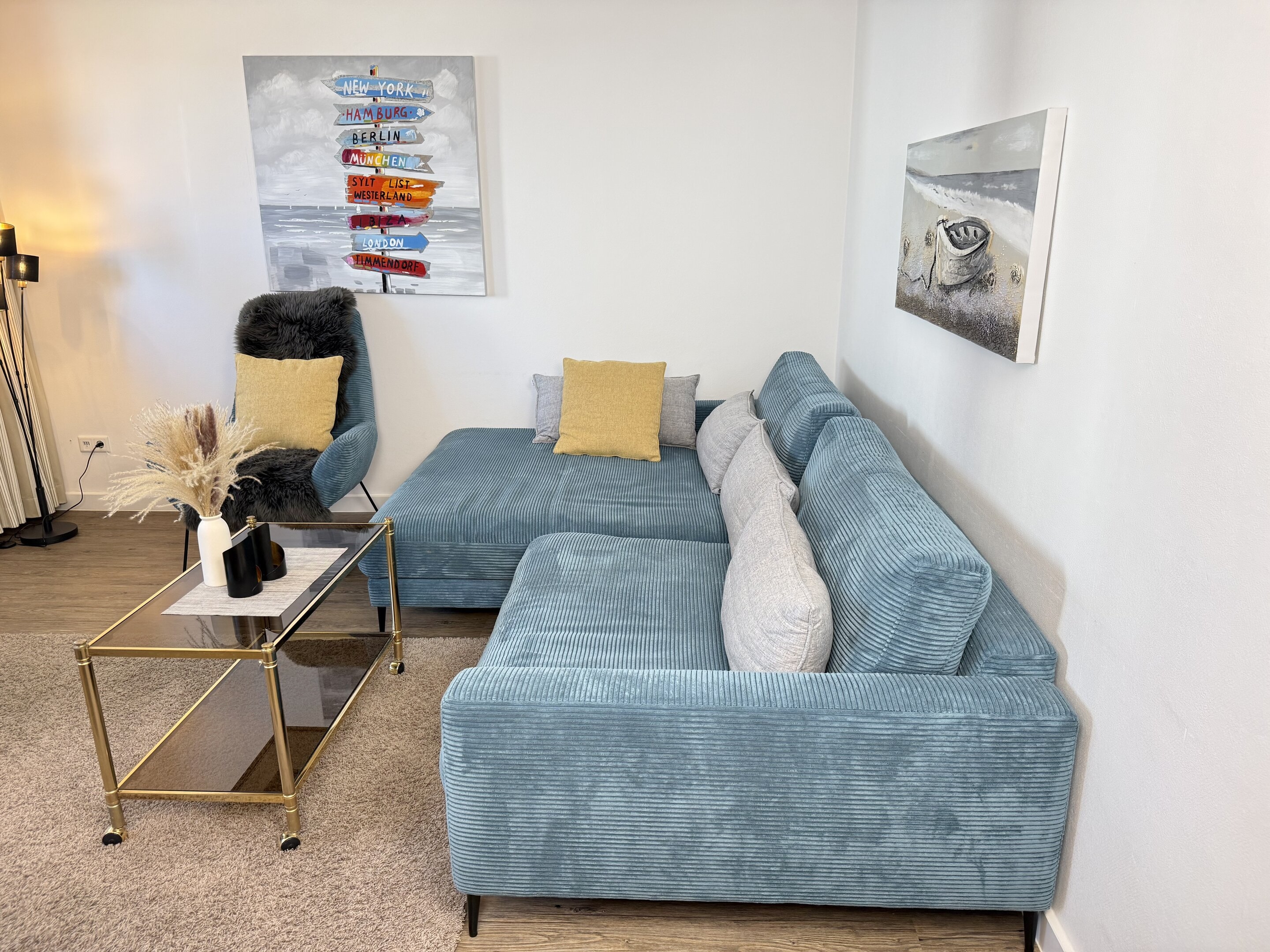 Schick renovierte 3-Zimmer-Nichtraucher-Ferienwohnung, ca. 63 qm, in der 2. Etage zur Landseite mit Ostloggia (Morgensonne, mit Balkonmöbeln und Auflagen) für max. 4 Personen (stufenfrei erreichbar).